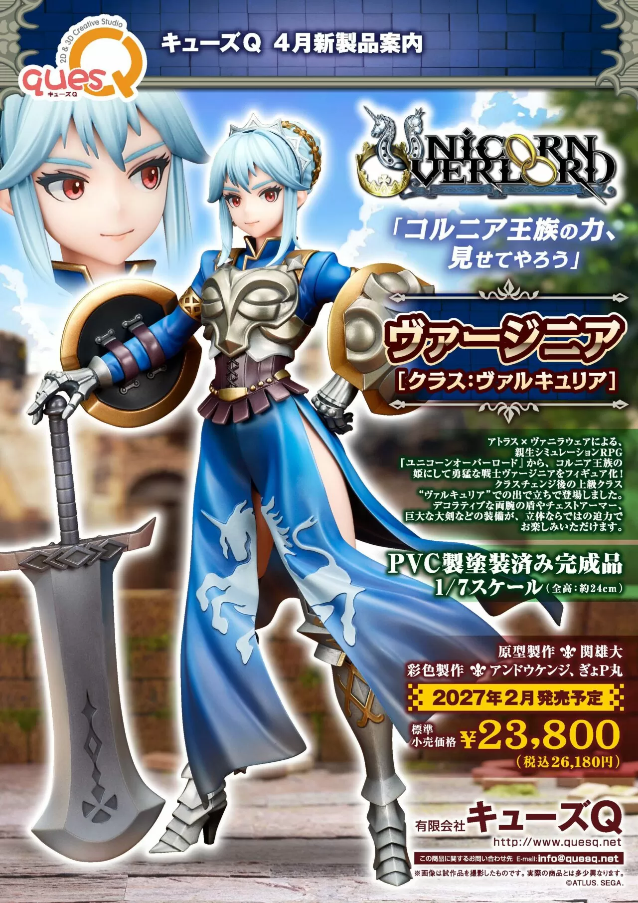 キューズQから、「ヴァージニア[クラス・ヴァルキュリア]」1/7スケールのデコマスが公開されました。