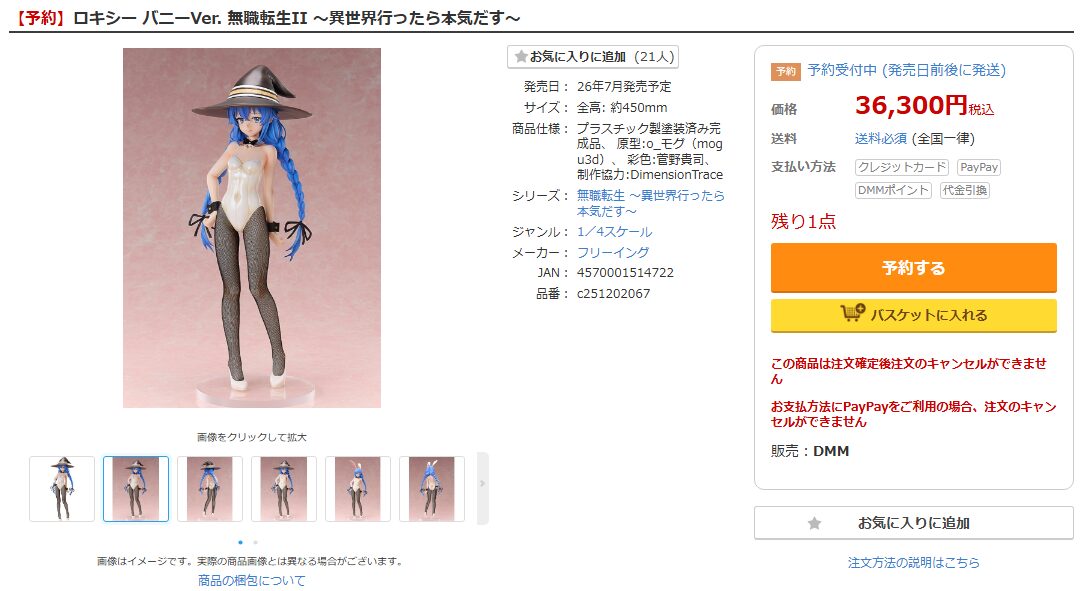 現在DMMにて、ロキシー バニーVer. 無職転生II 〜異世界行ったら本気だす〜が在庫復活中です。