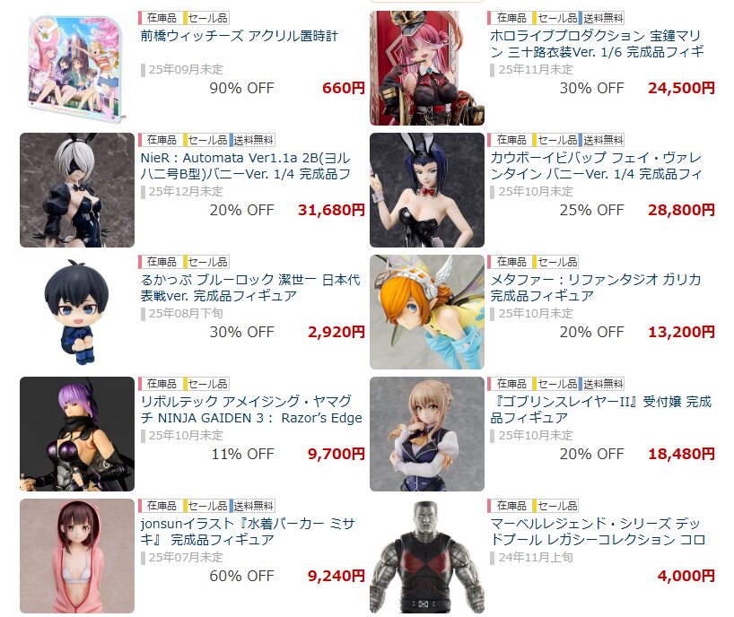 人気フィギュアが特価価格で購入できる「あみあみ特価セール」のおすすめ商品をまとめました。